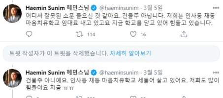 이후 혜민스님은 수억원 건물 소유자라는 주장이 나오면서 비난의 글이 쏟아졌다.
