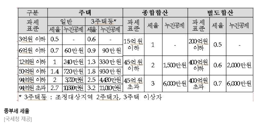 올해 세액에는 세법 개정에 따라 오른 세율이 반영 되지 않았다. 내년에는 고가 주택 보유자에 부과하는 종부세 최고 세율이 기존 3.2%에서 6%로 오른다.