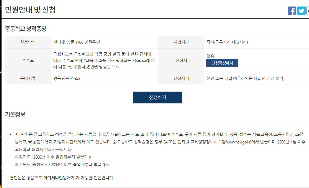 그럼 고등학교 졸업증명서는 조금 헷갈릴 수도 있지만 '중등학교 성적증명'에서 확인하시면 됩니다.
