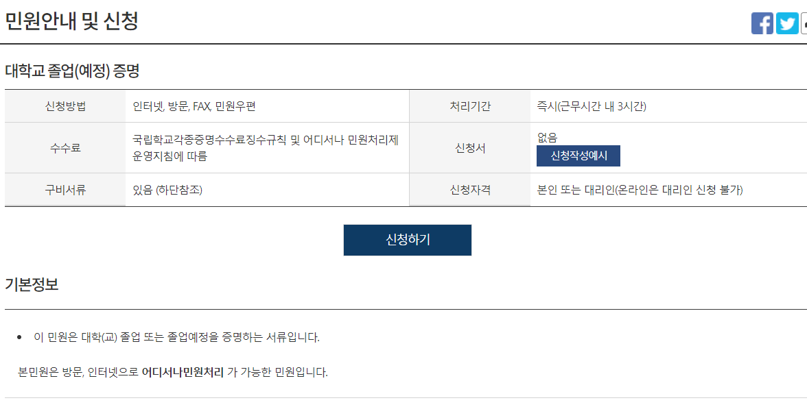 대학교 졸업증명서의 경우엔 기본적으로는 대학교에서 직접 신청을 해야 합니다.