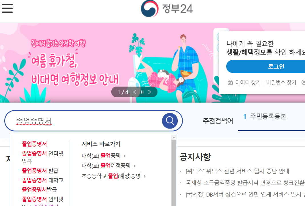 따라서 대학교 졸업장은 정부24보단 대학교 사이트에서 직접 하시면 인터넷발급도 가능하니 해당 대학교에 먼저 알아보시는 것을 추천드립니다.