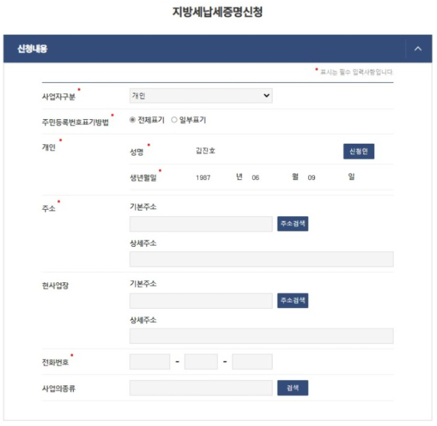 * 되어있는 인적사항들을 입력 하고 발급 및 출력 하면 된다.