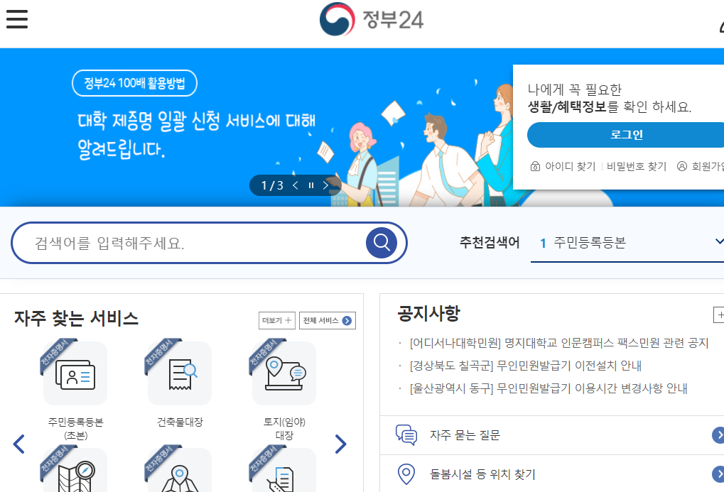 정부 24로 접속한다.