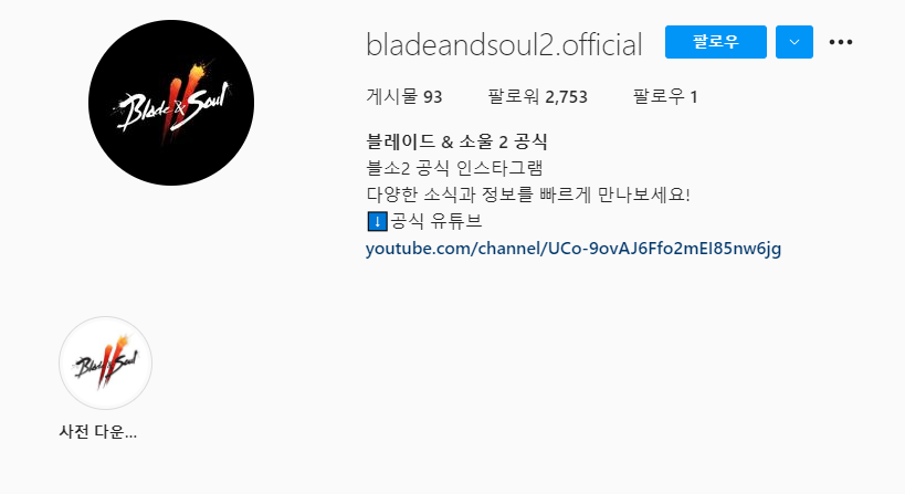 현재 블레이드앤소울2 인스타그램 팔로우수는 2753 이다.