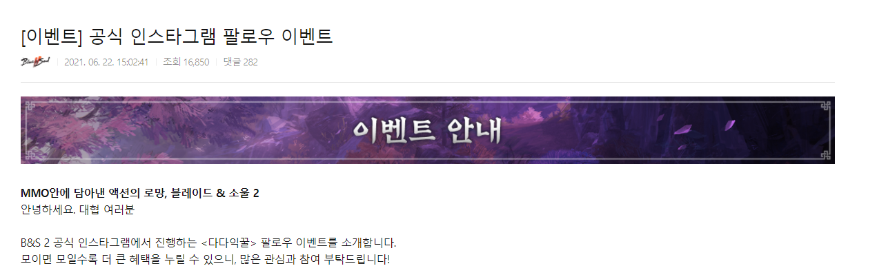 블레이드앤소울2 이벤트 인스타그램 팔로우 인벤트