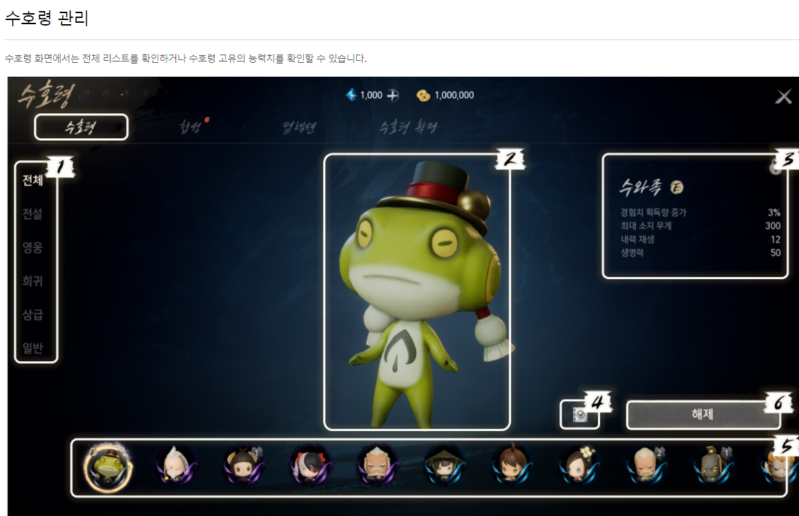 수호령이란 소환 시 사용자를 따라다니며 다양한 효과를 주는 일종의 보조캐릭이다.