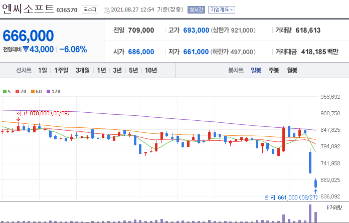 블레이드앤소울2가 기대에 못미치면서 주가가 연일 하락하고 있다.