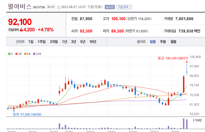전일 오늘 8월27일 12:54 -6퍼센트에서 시작 하고 있다.