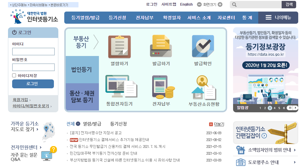 부동산 등기 열람하기로 들어간다