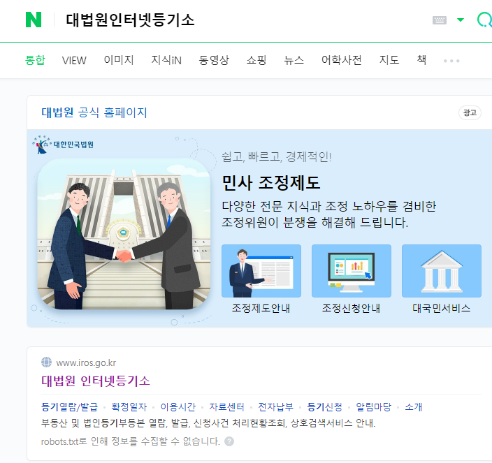 먼저 대법원인터넷등기소를 포털 사이트에 검색을 한다