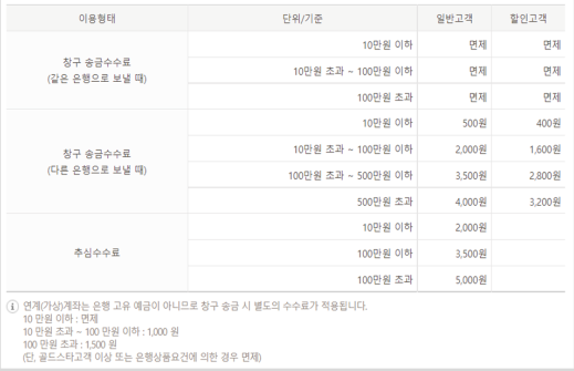 국민은행도 같은 은행의 경우 면제이다. 타행송금시 금액에 따라 차이가 있다.