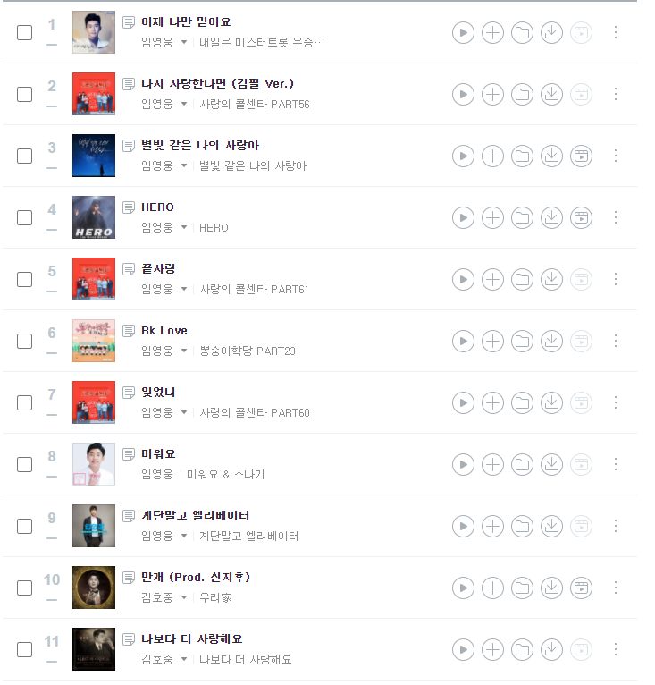 현재기준 트로트 멜론 차트 인기순위를 1위부터 9위까지 그냥 도배를 해두고 있다.