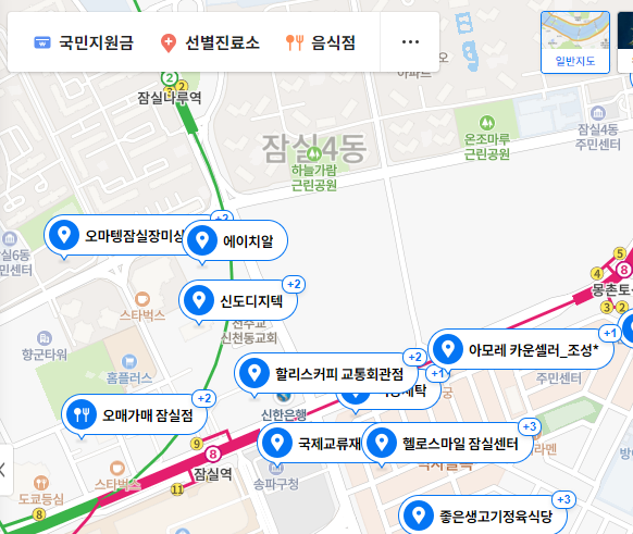 아래는 잠실로도 검색을 해봤다.