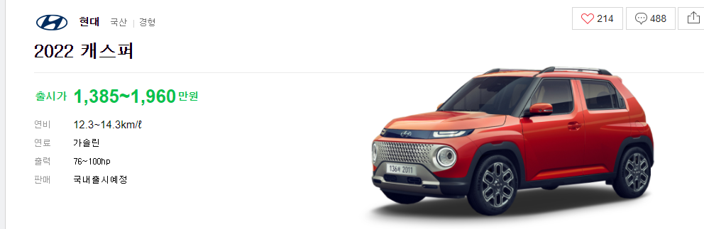 아무래도 캐스퍼는 레이와 비교될 것 같다
