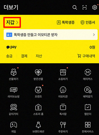 지갑을 눌르면 상단 탭에서 금융, 신분 증명등이 있는데 톡으로 간편하게 발급받기로 들어갑니다.