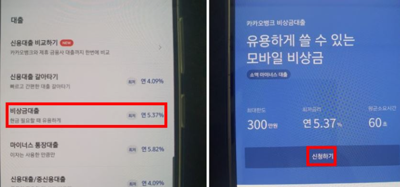 카카오뱅크에 비상금대출 신청이 가능 합니다. 카카오뱅크 비상금대출 신청 방법은