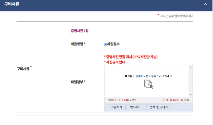 절차대로 정보를 입력 하고 증명사진을 업로드 해야 한다.
