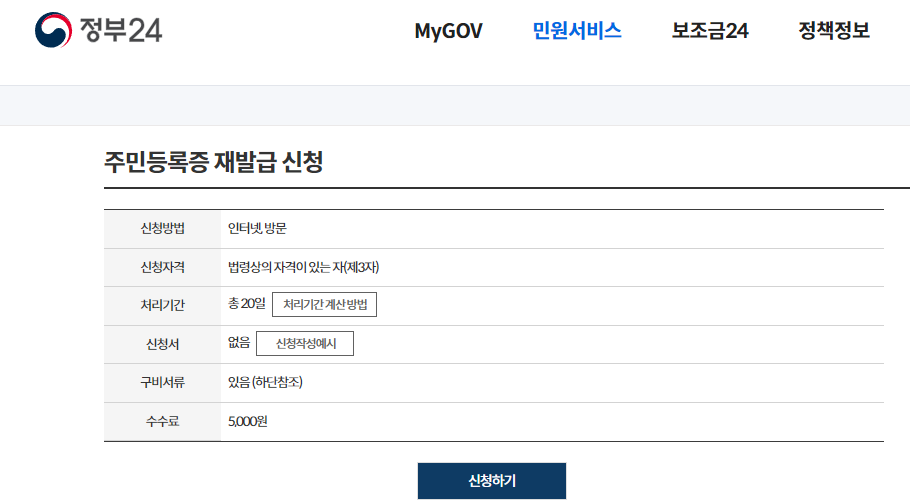 정부 24에서 간단히 인터넷으로 신청 할 수 있습니다.