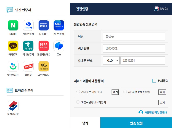 모바일 정부24앱으로 동일하게 신청 가능 합니다.