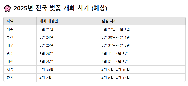 2025년에는 벚꽃이 언제 필까?