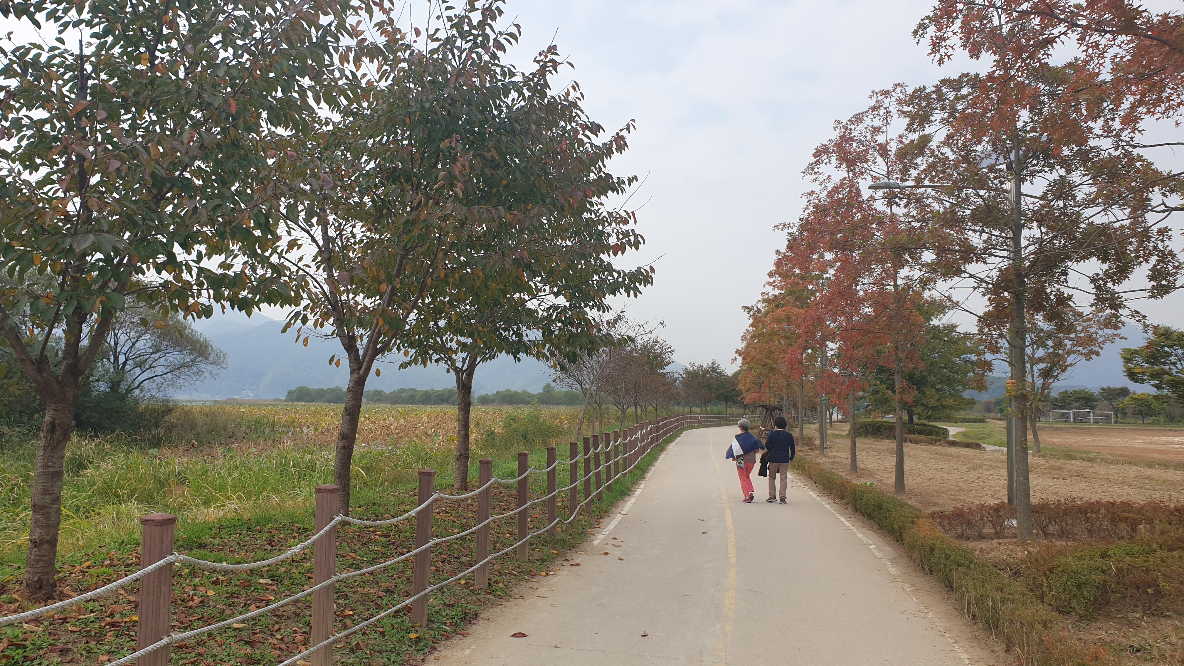 산책로가 아주 잘되어 있고 자전거를 대여할 수 있는데 자전거 타기 아주 좋은 곳입니다. 넓이가 미사조정경기장 정도 되려나요?