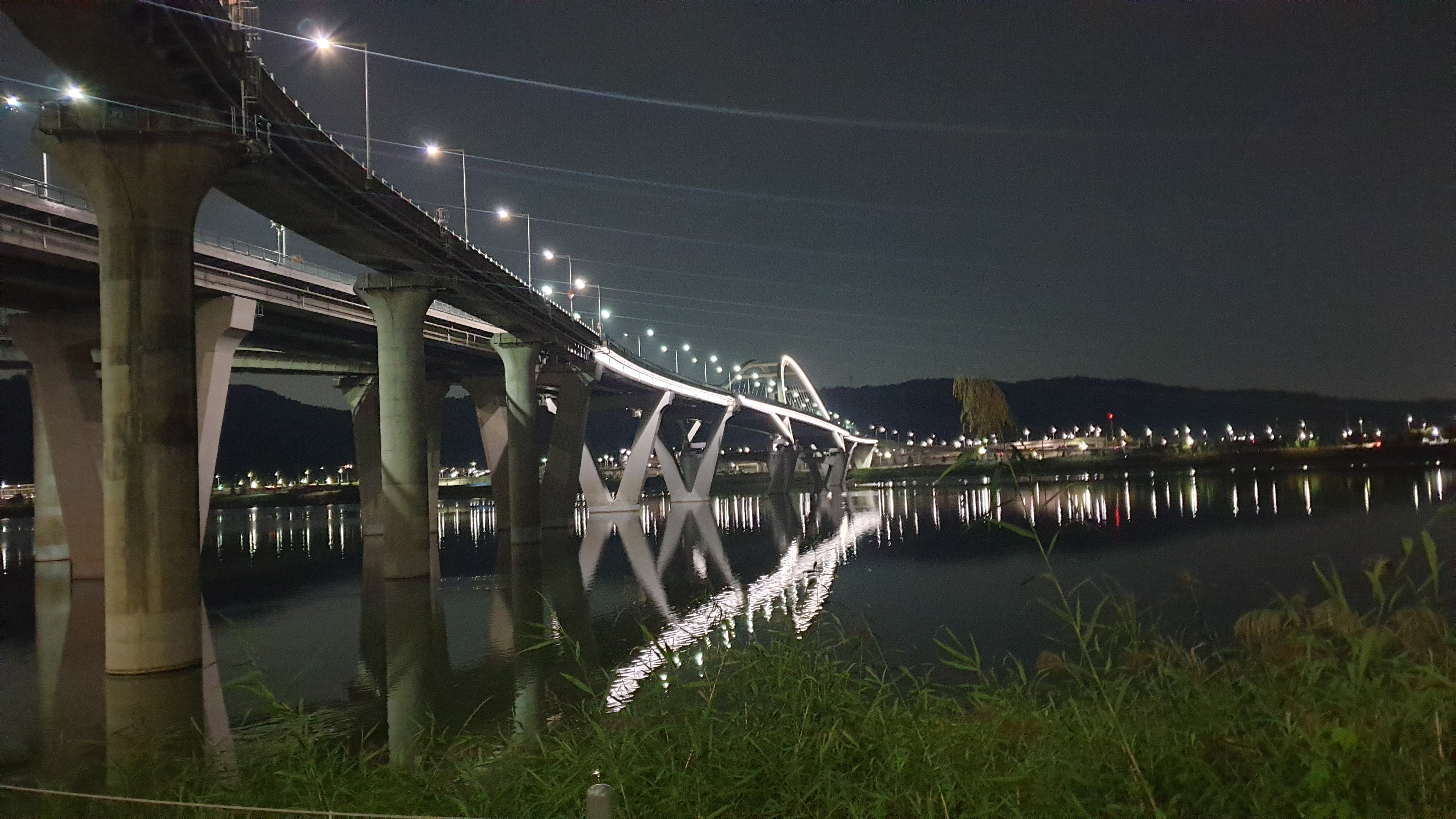 이날 물살이 잔잔해서 암사대교와 야경이 물에 비친 모습이 아름다웠습니다. 저는 암사동에 오래 살아서 그냥 암사대교라고 부르는데요. 사실 저 다리가 만들어지기 전에 가칭은 '암사대교' 였습니다.