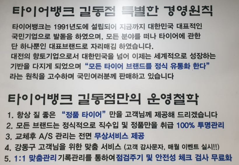 강동구에 살기에 길동타이어뱅크로 향했어요. 전에 앞바퀴 타이어도 갈았었어요.