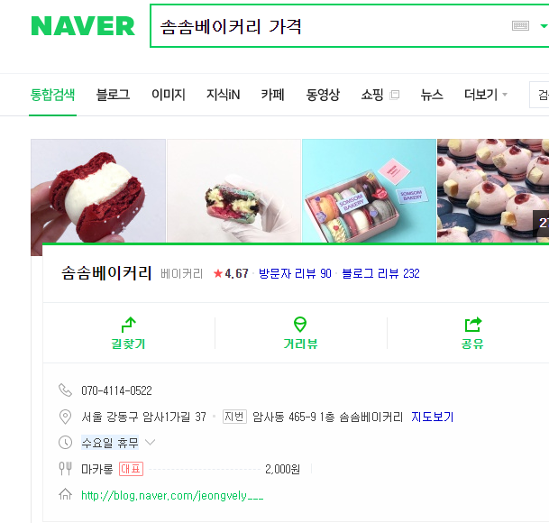 암사동에 솜솜베이커리 라는 마카롱 일명 뚱카롱 맛집이 있다.