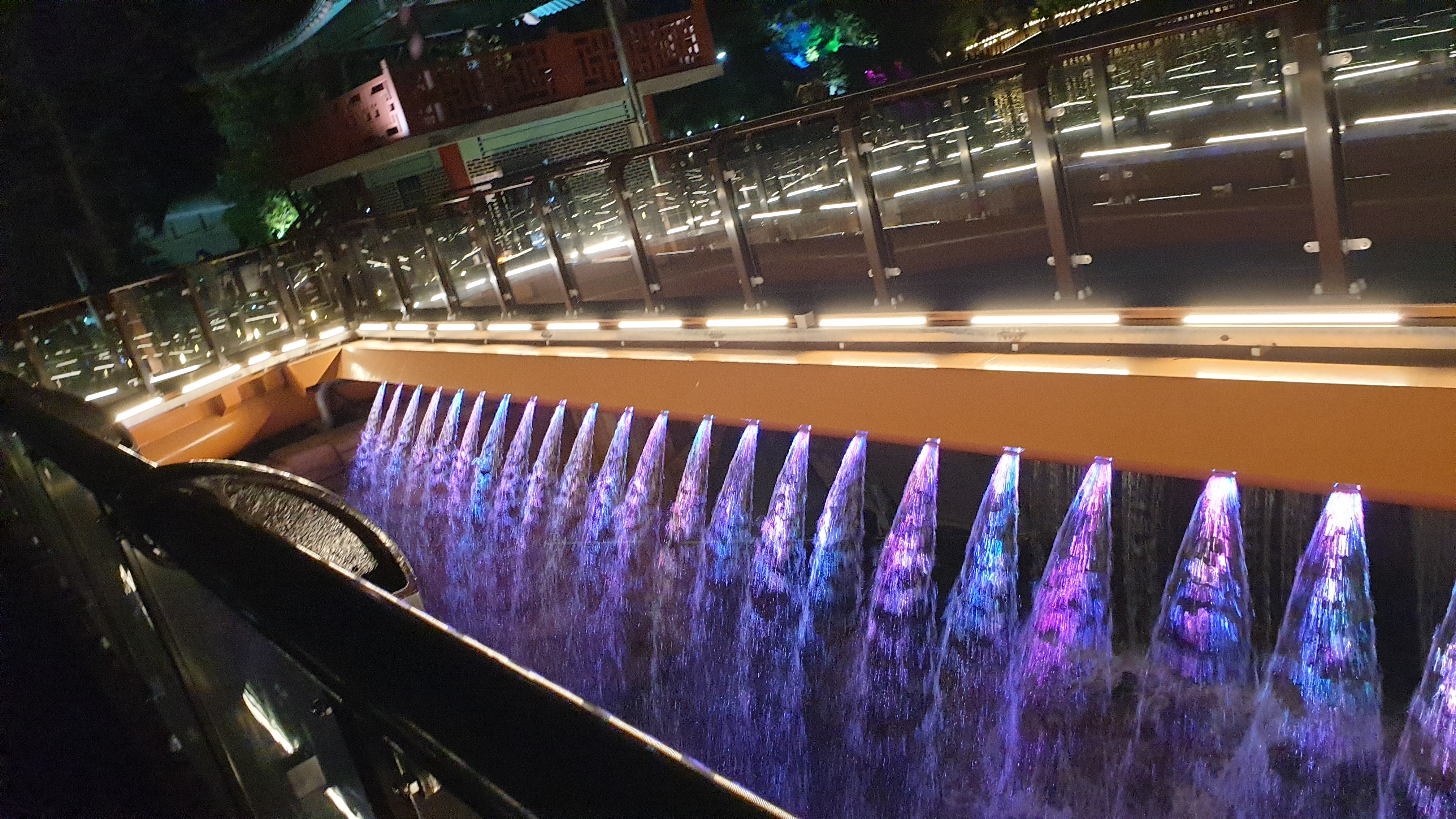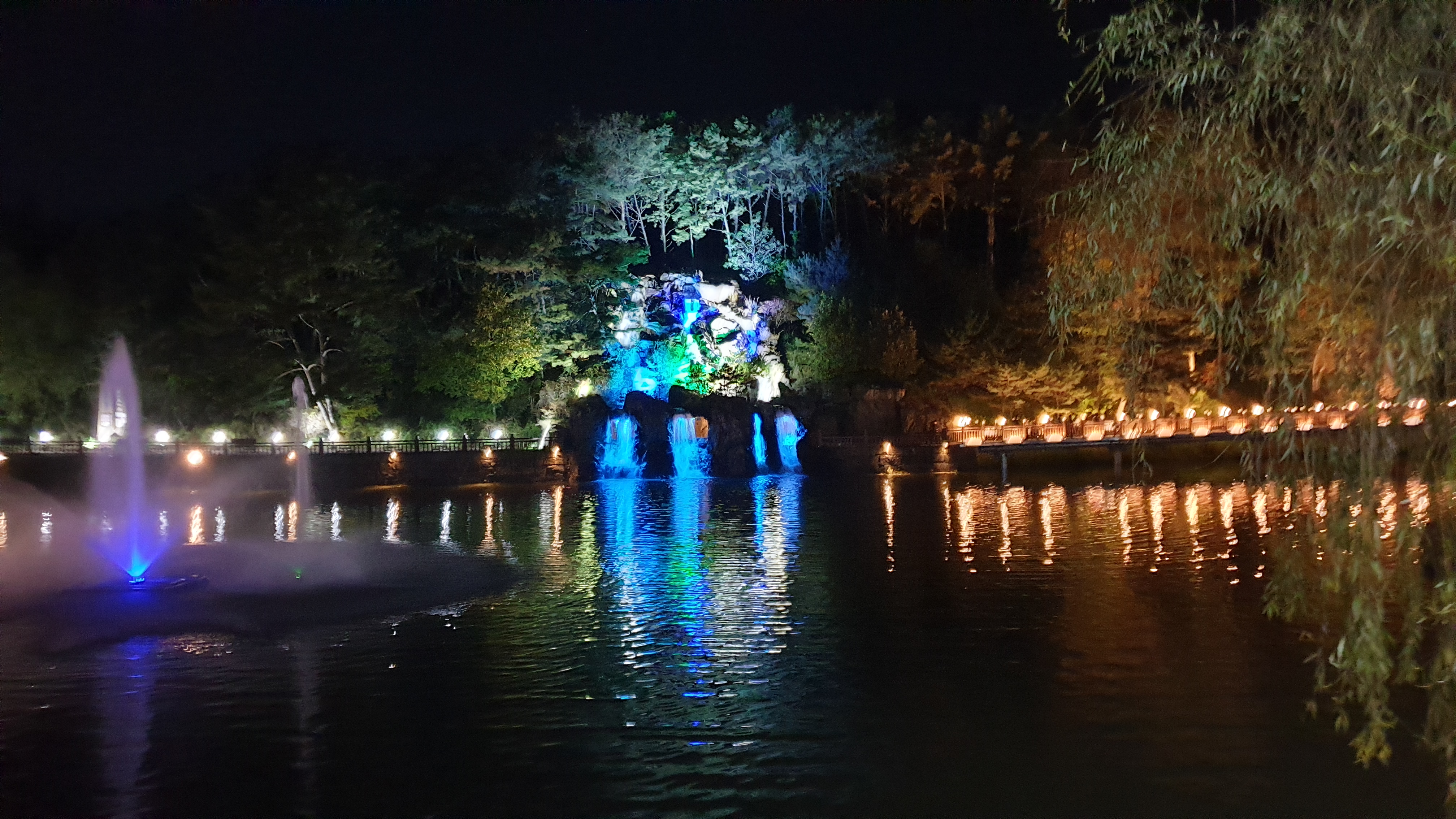 용추폭포의 모습을 제대로 감상할 수 있는 곳에 가면 야경의 불빛과 자연폭포인 용추폭포가 장관을 이룹니다.