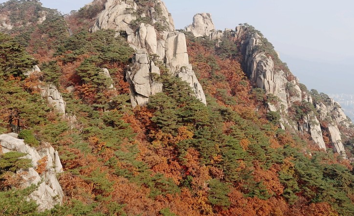 정상으로 오를 수록 화려한 단풍에 가슴이 웅장해진다. 암벽 사이사이로 단풍나무들과 바위들의 조화는 자연에서 느낄수 있는 아름다움의 극치를 보여준다.
