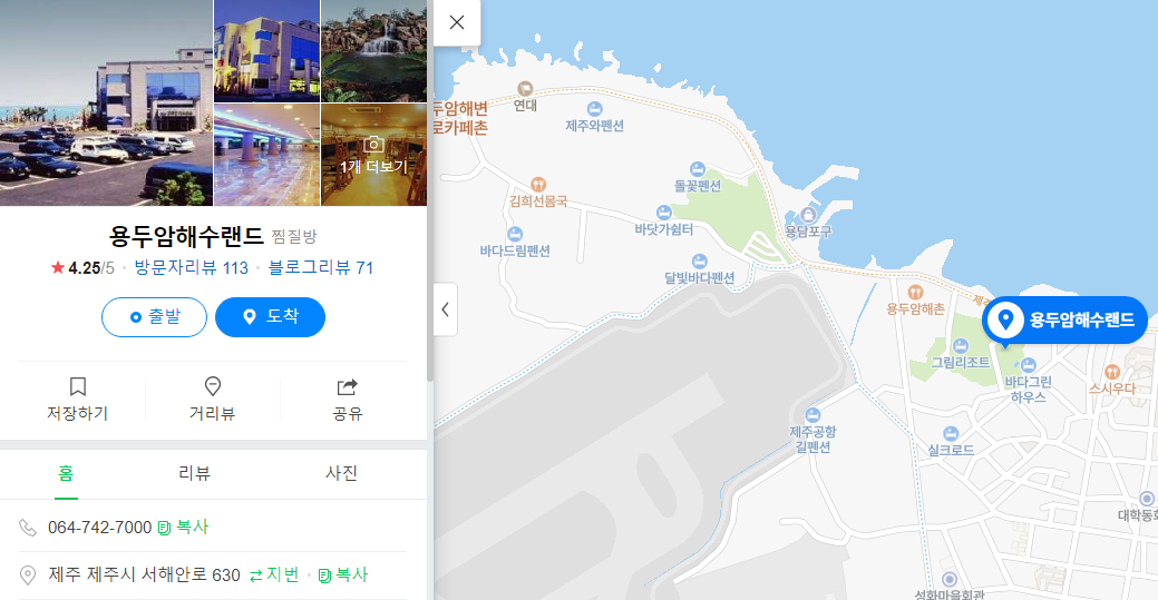 제주공항에 늦게 도착한 사람들이거나, 제주 공항에 가기 전 피로를 풀기 위해 공항근처 찜질방으로 용두암 해수랜드를 찾는다.