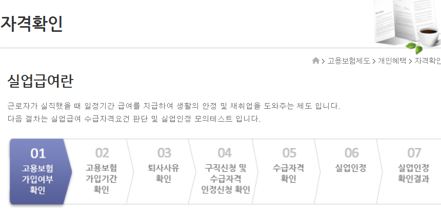 고용보험 홈페이지 실업급여 탭에서 확인 가능하다.